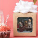Capture the magic of a winter wonderland with this enchanting Christmas design. Featuring a wooden cart nestled in a snowy scene, this decoration brings holiday charm to any setting. Embrace the spirit of the season with this delightful addition to your decor.