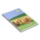 This colourful notebook will bring the countryside into your life. The design consists of a rooster and hen I spotted in a meadow in France. The rooster was running ardently towards the chicken, who was strutting about in the field.