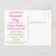 A cute postcard invitation that you can personalise and send out for a bachelorette party. The pink and green colours and font of the text can be changed to fit your preference.