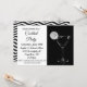 An elegant invitation that you can personalise and send out for your cocktail party. The font and colour of the text can be changed to fit your preference. A black and white chevron pattern decorates the back of the card.