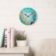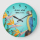 "Cocktail time" 5 o'clock with all of the numbers showing 5 o'clock. Time for cocktails! Customisable text. Tropical time with parrot and bird of paradise flowers. Perfect for tiki bar or lanai.
