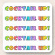 COCKTAIL UP! A bar full of the various cocktail glasses filled with a party full of drinks in a rainbow of colours in a whimsical and colourful style.