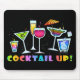COCKTAIL UP! A bar full of the various cocktail glasses filled with a party full of drinks in a rainbow of colours in a whimsical and colourful style.