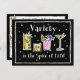 These cute and colourful recipe cards are sure to delight. Featuring 4 different drinks, including lemonade, a martini and olive and a fruity drink complete with umbrella. Text says VARIETY IS THE SPICE OF LIFE. Lined back with PERSONALIZATION for your favourite gourmet chef or bartender. Make a gift set with our coordinated kitchen magnet or note cards.