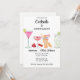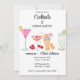 Fun cocktails and conversation party invitation for a destination event featuring illustration of colourful tropical cocktail drinks.