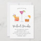 Fun and whimsical virtual bachelorette party invitation template card featuring illustration of colourful cocktail drinks in watercolor. Perfect way to celebrate your party during the pandemic.