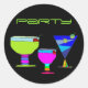 Colourful drinks party stickers / envelope seals with three cocktails and neon green "party" text.