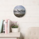 A clock featuring a photo of Cocoa Beach, Florida. Customize text at check out.