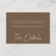 Celebrate your love with this minimalist cocoa brown small wedding details enclosure card design. Featuring a delicate oak leaf and acorn sketch on the back, it's perfect for a rustic autumn ceremony. This earthy, modern look offers a warm and sophisticated feel for your nature-inspired wedding. Created by Simply Farmhouse Press.