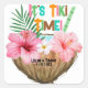 Tiki party theme couples shower stickers feature a watercolor tropical coconut cocktail with pink hibiscus flowers, palm leaf and an "It's Tiki Time!" caption in cheerful, summery colours. These can be used as envelope seals to add an island inspired touch to your invitations and for gifts and favours. Art by KL Stock