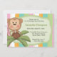 Cute Monkey Birthday Invitation with a monkey sipping on a coconut. Customise with your party details. delightful doodles.