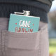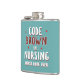 The flask itself is fine. It’s a cheap flask, obviously bought in bulk, however am prepared to overlook that. Given that it is a personalized item, I would have liked to have seen gift boxing instead of the generic packaging. Terrible printing, and/or quality. It’s a cheap, tacky vinyl. It is not cut straight and is also applied in a way that it is overhanging the bottom, causing the glue to catch on items and it will eventually roll and tear, damaging the wrap.