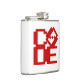 The flask itself is fine. It’s a cheap flask, obviously bought in bulk, however am prepared to overlook that. Given that it is a personalized item, I would have liked to have seen gift boxing instead of the generic packaging. Terrible printing, and/or quality. It’s a cheap, tacky vinyl. It is not cut straight and is also applied in a way that it is overhanging the bottom, causing the glue to catch on items and it will eventually roll and tear, damaging the wrap.