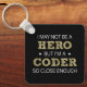 I may not be a hero, but I'm a Coder so close enough humourous word art in sans-serif and doodle cross-hatch font lettering in white and golden yellow.