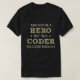 I may not be a hero, but I'm a Coder so close enough humourous word art in sans-serif and doodle cross-hatch font lettering in white and golden yellow.