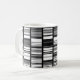 A digital abstract design consisting of eight columns of bars of varied thickness in various grayscale shades.