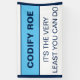Codify Roe It's the Very Least You Can Do.Codifying Roe should be the floor of women's healthcare rights, not the ceiling. And now, even that doesn't exist. Tell Congress it's time that they do the very least they can do for women's health, safety, and equality, because women are people, and abortion, whatever the reason, is healthcare. Design description: The design space is a white background with a dark blue border. In the top half of the design space, the words, "Codify Roe" in a dark blue sans serif font. Underneath that, a wide light blue stripe with matching dark blue top and bottom borders. Below the stripe, in the bottom half of the design, the words, "It's the very least you can do" across two lines.