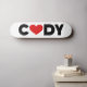 The name Cody with the letter o replaced with a red love heart. The colours can be changed.