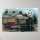 "Cody's Garage" is a picture of an old vintage service station with older chevy's parked outside and in. The original design was done in pencil, watercolor and airbrushed.