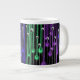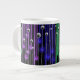 This coffee mug has an image of an abstract pencil drawing on it which went through adjustments on Photoshop to make it what it is. As an artist I have spent lots of time working with bright colours and the more I have done that the more I have decided that green, blue, and purple are my favourite colours to use together. And having the design over a pitch black background makes it stand out more.