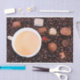 This photography still life of coffee beans, a cup of coffee, and chocolate on tissue paper creates a cosy, textured aesthetic that’s perfect for multiple uses. The tissue paper can be repurposed for gift wrapping, ideal for presents aimed at coffee lovers, or used in café decor, bringing warmth and charm when framed or displayed. It's also great for product packaging, particularly for small coffee roasters or chocolatiers looking to add a personal, inviting touch to their brand.