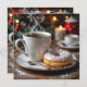 A sweet Christmas card featuring an illustration of a whimsical cup of coffee, a sprinkled donut and a festive background. The back has a sweet little holiday poem that you can leave, edit or replace. Add your names in the personalize area.