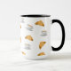 This coffee and croissant fancy pattern design is featured on gentle soft background.