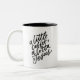 Best way to start your day! “A little coffee and a lotta Jesus” is hand lettered on this sweet mug. Reverse has a small mug and heart with “bless this mess” lettered above.