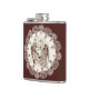 The flask itself is fine. It’s a cheap flask, obviously bought in bulk, however am prepared to overlook that. Given that it is a personalized item, I would have liked to have seen gift boxing instead of the generic packaging. Terrible printing, and/or quality. It’s a cheap, tacky vinyl. It is not cut straight and is also applied in a way that it is overhanging the bottom, causing the glue to catch on items and it will eventually roll and tear, damaging the wrap.