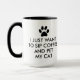 I just want to sip coffee and pet my cat. Great for cat lovers and cat owners. With a black paw print and black bold text/letters typography.