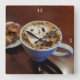 Coffee Art Cafe Latte Coffee Cup Rustic Square Wall Clock
