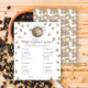 Watercolor coffee beans and cup of coffee and beans pattern. Coffee brewing baby shower. Coffee themed baby shower with. Text with coffee ring and with coffee beans and cup of coffee.