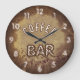 This rustic Coffee Bar wall clock features a warm coffee-inspired design with a simulated burlap texture and natural coffee stain effects. The background mimics coffee splashes on fabric, creating a cosy and authentic café atmosphere.