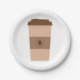 A coffee cup with a coffee bean decoration on it. This design looks really effective on this Paper Plates