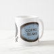 A modern coffee sign with a blue background and a brown border around it. Says 'coffee beans', a few loose coffee beans beside it.