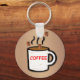 This fun coffee-themed keyring features a steaming hot mug of coffee with 3 coffee beans. Great gift for a lover of cappucino, latte or espresso!