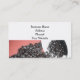 A unique card featuring a white coffee mug spilling over with dark roast coffee bens on a soft reddish background. Customise with all of your business information as desired.