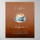 Latte or cappuccino, topped with latte art in the form of a heart. The background is a warm brown colour with a textured appearance. The text on the poster reads "Coffee before CHAOS," with "Coffee" The overall aesthetic is rustic and cosy, suggesting that a cup of coffee is essential for facing the chaos of the day ahead. It invites the viewer to pause, savour the moment, and embrace the tranquillity that comes with a steaming cup of java.