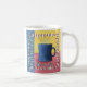 Indulge in our Coffee Break Series. This design features a charming blue mug set against a lively backdrop of red, yellow, and blue, creating a visual symphony for coffee enthusiasts. Qzik Art