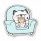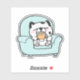 Introducing our Coffee Break Pooch sticker, the perfect addition to any cosy, laid-back collection. This charming sticker features a loveable dog comfortably seated on a plush, overstuffed chair, enjoying a relaxing cup of coffee. It’s a delightful blend of cuteness and calm that’s sure to bring a smile to your face.