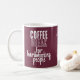 White artwork on a rich burgundy background for a bold coffeehouse look. This design features motivational coffee quotes with a stylish coffee cup illustration, perfect for coffee lovers. Add your name above the coffee cup design to make it truly unique. You can also personalize the text—change words like "people" to your profession or any other phrase you prefer. Ideal as a gift or for your own daily coffee break. All text fields are editable for easy personalization!