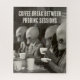 Even alien abductors need a coffee break! This vintage black and white photo captures four space aliens in suits enjoying a moment of relaxation over a cup of coffee at a café.