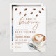 This stylish baby shower invitation features coffee beans and a cup of coffee and can be personalised with your details set in stylish typography. The reverse features your special photo and a registry QR code. Designed by Thisisnotme©