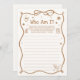 Coffee Bridal Shower Guess Who Am I Game Card