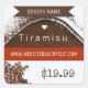 You can customise this coffee bakery sticker by adding your bakery name, price of the pie, address, and website. This sticker works well for tiramisu and other cocoa + coffee flavoued desserts.