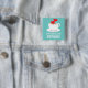 Custom employee name button or pin for coffee shops. Turquoise blue, espresso brown, red and white colours. Image features a cup of coffee brewed with love. Use this image or upload your own logo or picture to the space. Personalise with the business name and name of the staff member. Change the blue background colour with the Customise It tool (Select Edit, then choose Background colour).
