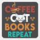 Coffee Cat Books Repeat, Coffee reading Cat Lover Square Sticker
