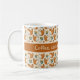 Charming orange and white cats in naive art style decorate this fun coffee mug. Coffee, cats, and cozy mornings. Text can be changed. Image was AI-generated by IveyCottage.