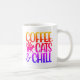 tart your day with the perfect trio: coffee, cats, and chill vibes! This charming mug features the playful phrase “Coffee, Cats & Chill” in a modern font, accompanied by a couple of adorable cat silhouettes. Whether you’re savouring your morning brew, curling up with a good book, or enjoying a lazy afternoon with your feline friends, this mug is the ultimate companion for those who know the true meaning of relaxation.