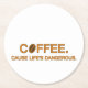 Coffee. Cause Life's Dangerous, humourous quote Round Paper Coaster